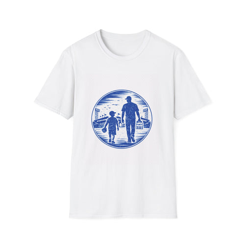 Father and Son Walking to Ballgame- Chicago NL Colors